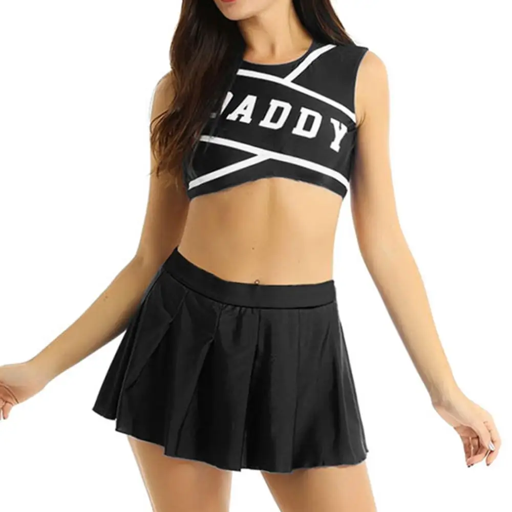 Особенности:Женский очаровательный костюм болельщика для костюмированной вечеринкиУкороченный топ без рукавов с круглым вырезом и надписью «DADDY» спереди; Эластичная плиссированная мини-юбка.Хорошая эластичная ткань, мягкая и удобная в носке, отлично подчеркивает ваши вечерние и спортивные мероприятия.Хороший выбор для нарядов, ролевых игр, сценических костюмов, карнавала, танцев, соревнований по танцам и т. д.Для получения подробной информации о размерах обратитесь к описанию товара. Ручная стирка в холодной воде.