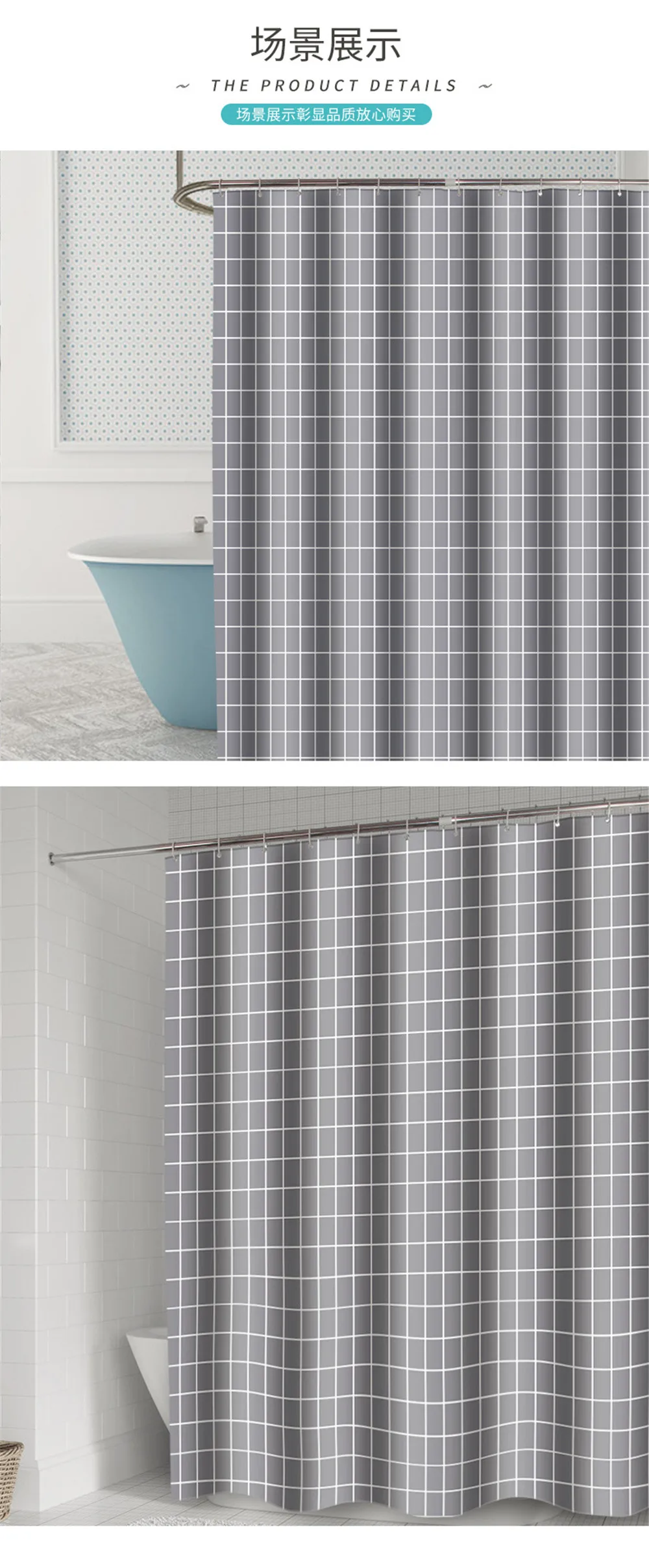 Серая Водонепроницаемая занавеска для душа в клетку, занавеска для ванной комнаты с 12 крючками и металлическими люверсами для ванны