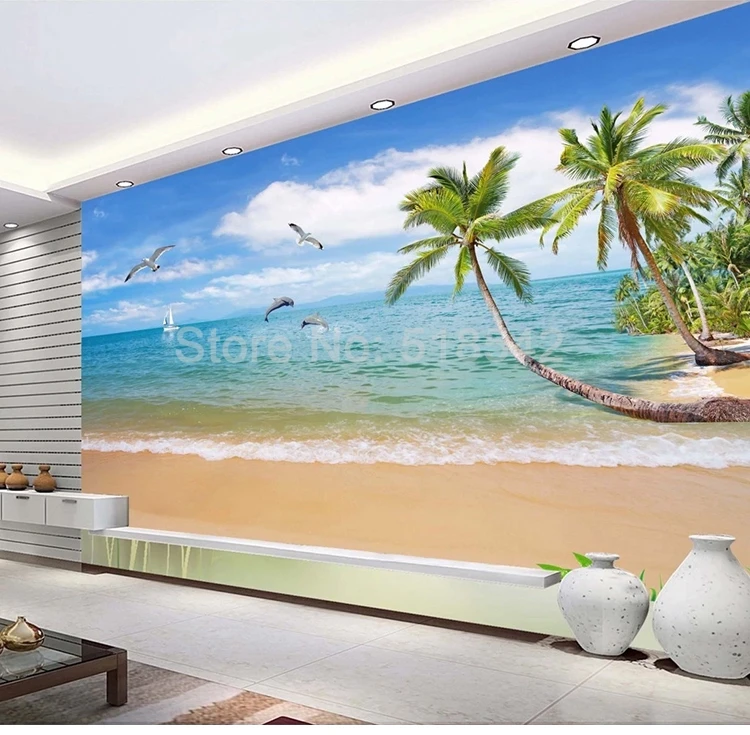 3D-обои на заказ с изображением летнего Морского Пейзажа, песчаного пляжа, постер, настенная живопись для гостиной, спальни, фотобумага для фотографирования, фотообои 3D