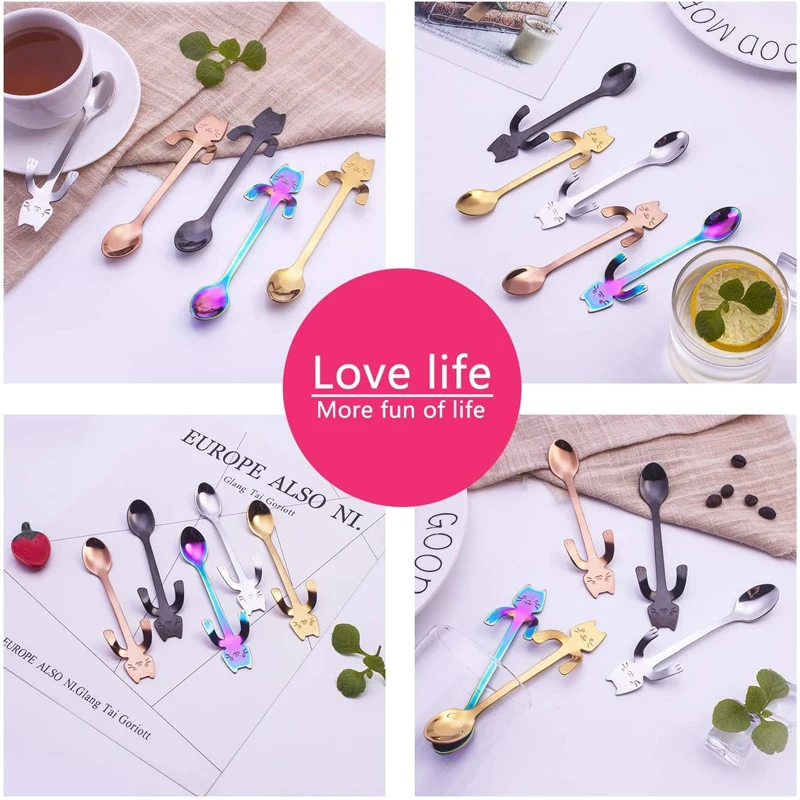 Ложки из нержавеющей стали с милым мультяшным котом, подвесная кофе...