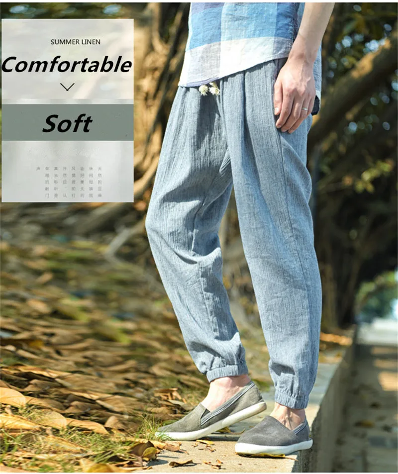 2020 новые хлопковые льняные повседневные штаны-шаровары для мужчин, удобные летние брюки для бега, мужские мягкие льняные штаны в китайском стиле Harajuku