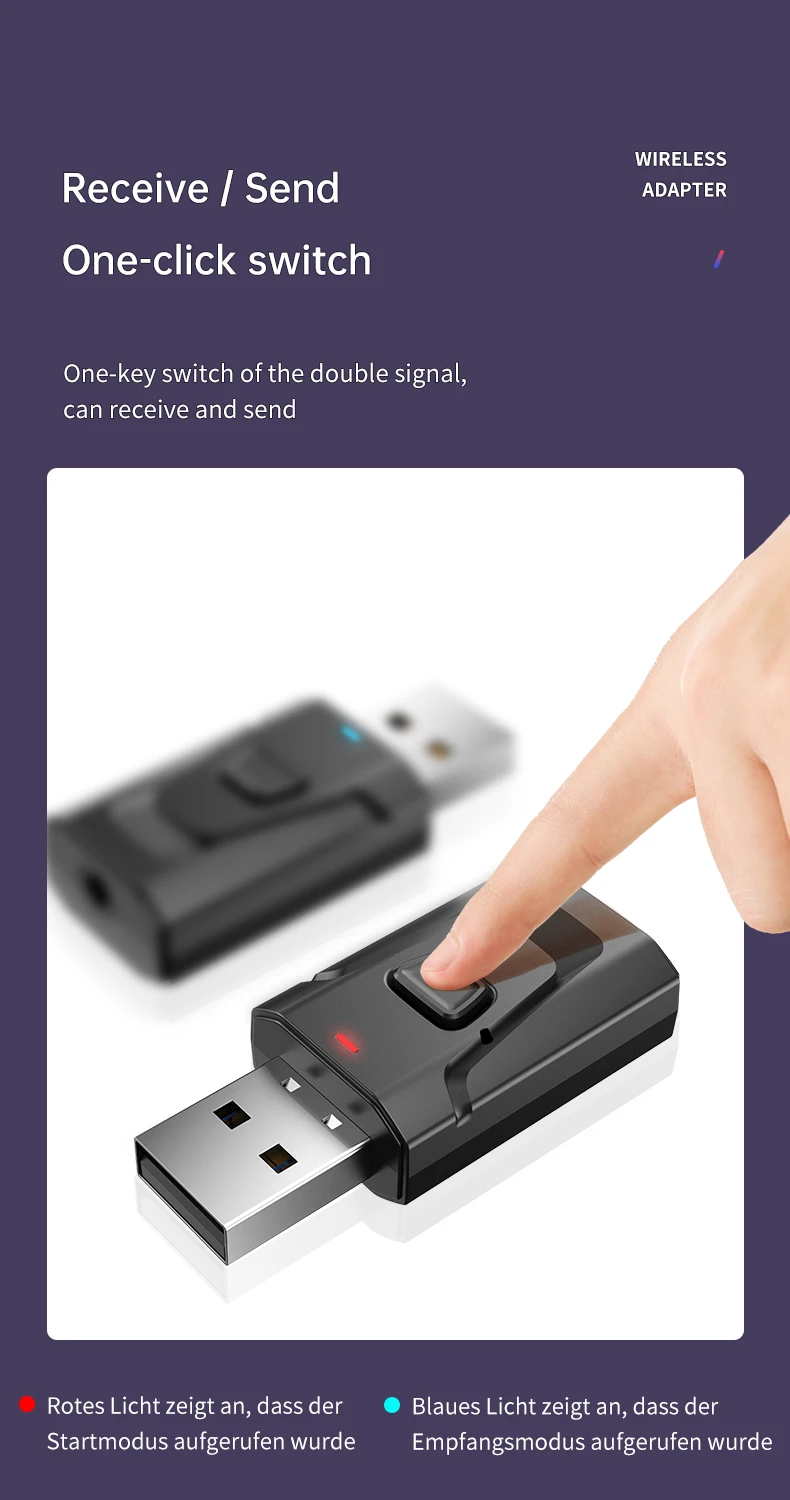 1x Bluetooth 5,0 аудио передатчик/приемник адаптер