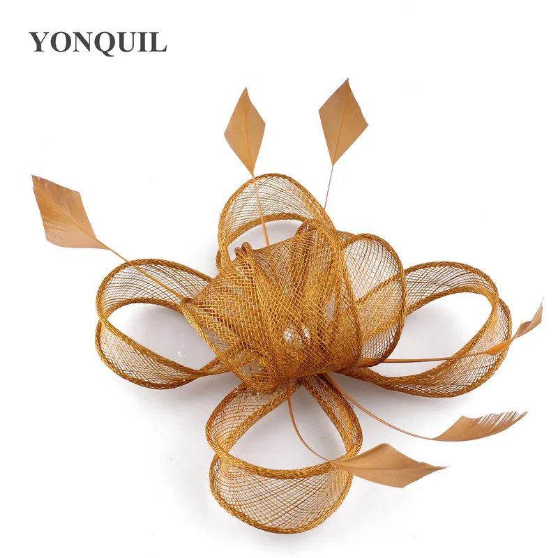 Головной убор женский свадебный золотистый, элегантная Вуалетка Sinamay для невесты, шикарный аксессуар для скачек, сетчатый головной убор для невесты