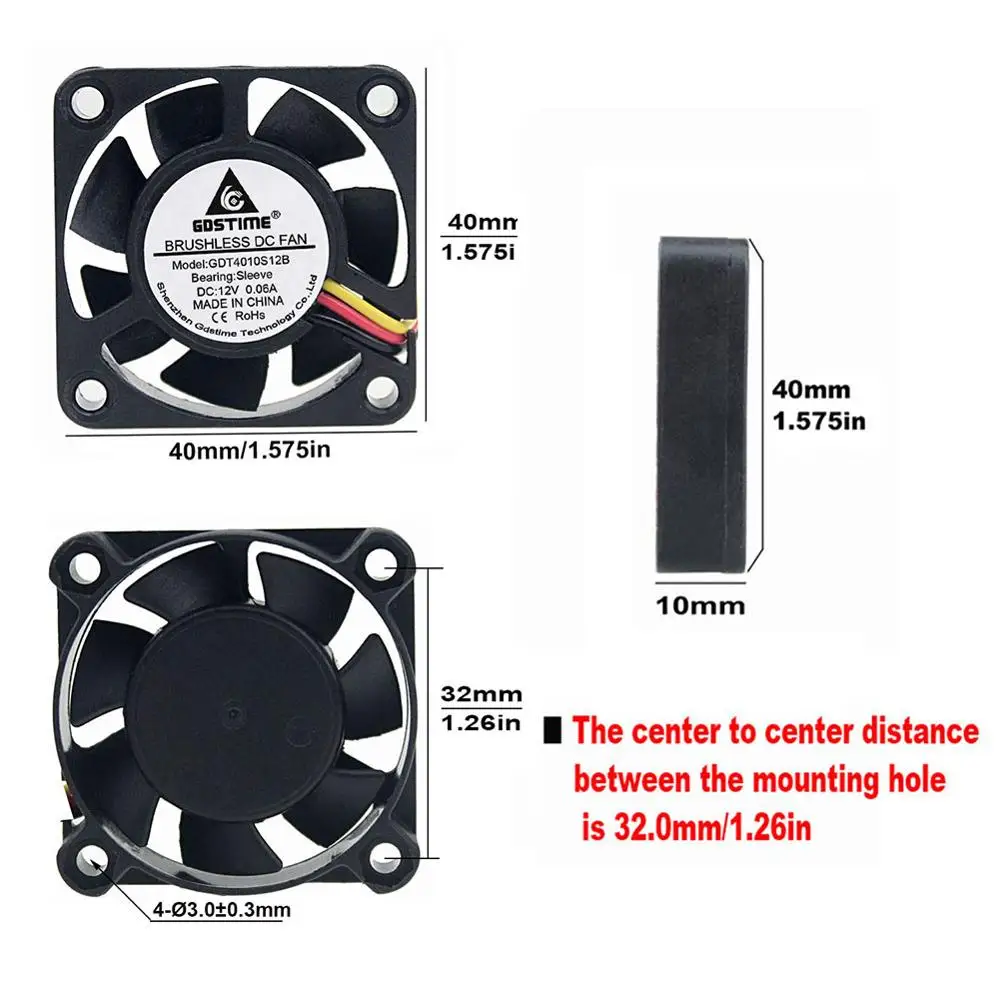 2 шт. Gdstime 40 мм вентилятор охлаждения 40x40x10 мм кулер для про...