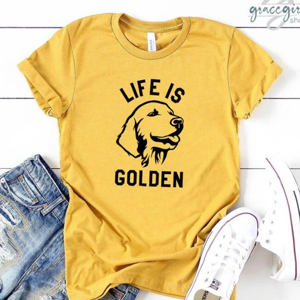 Женская футболка с круглым вырезом Life Is Golden Dog, хлопковая футболка с короткими рукавами и принтом животных, Прямая поставка