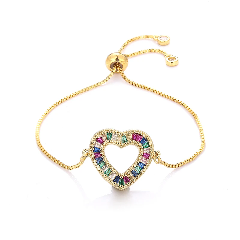 Модные женские радужные браслеты с любовью, ювелирные изделия, золотой браслет с разноцветным цирконием, браслет, регулируемый браслет-цепочка для женщин