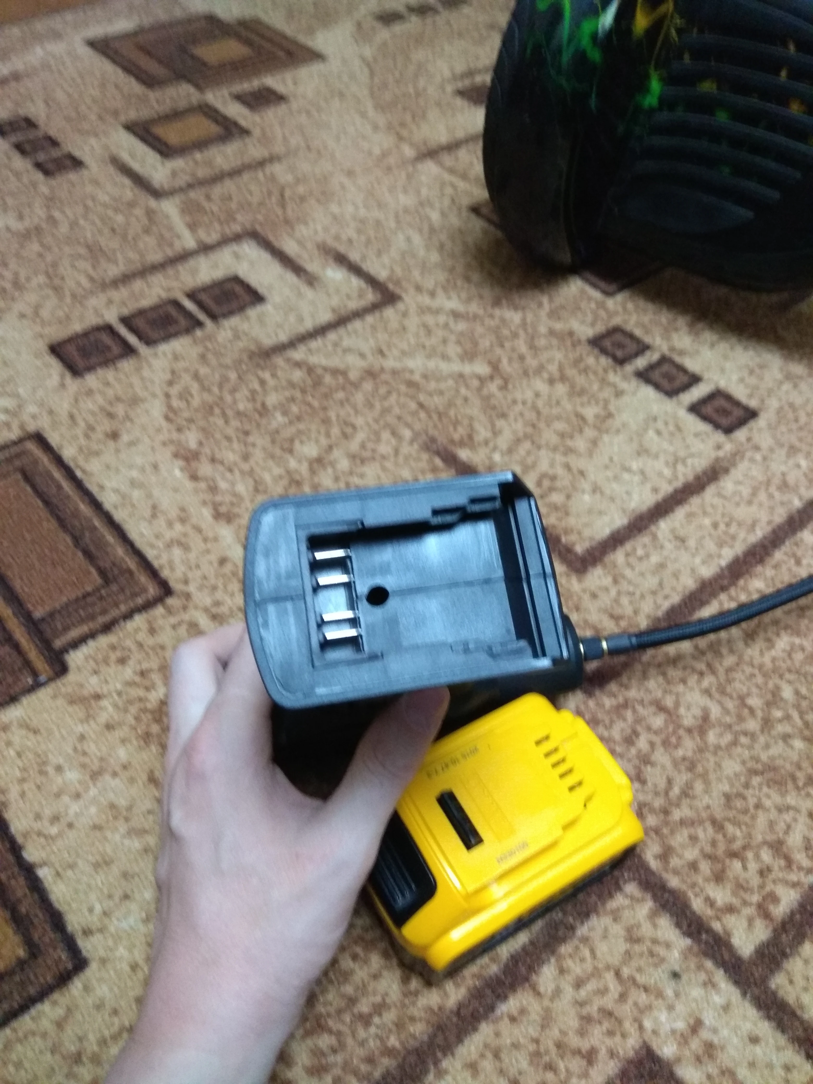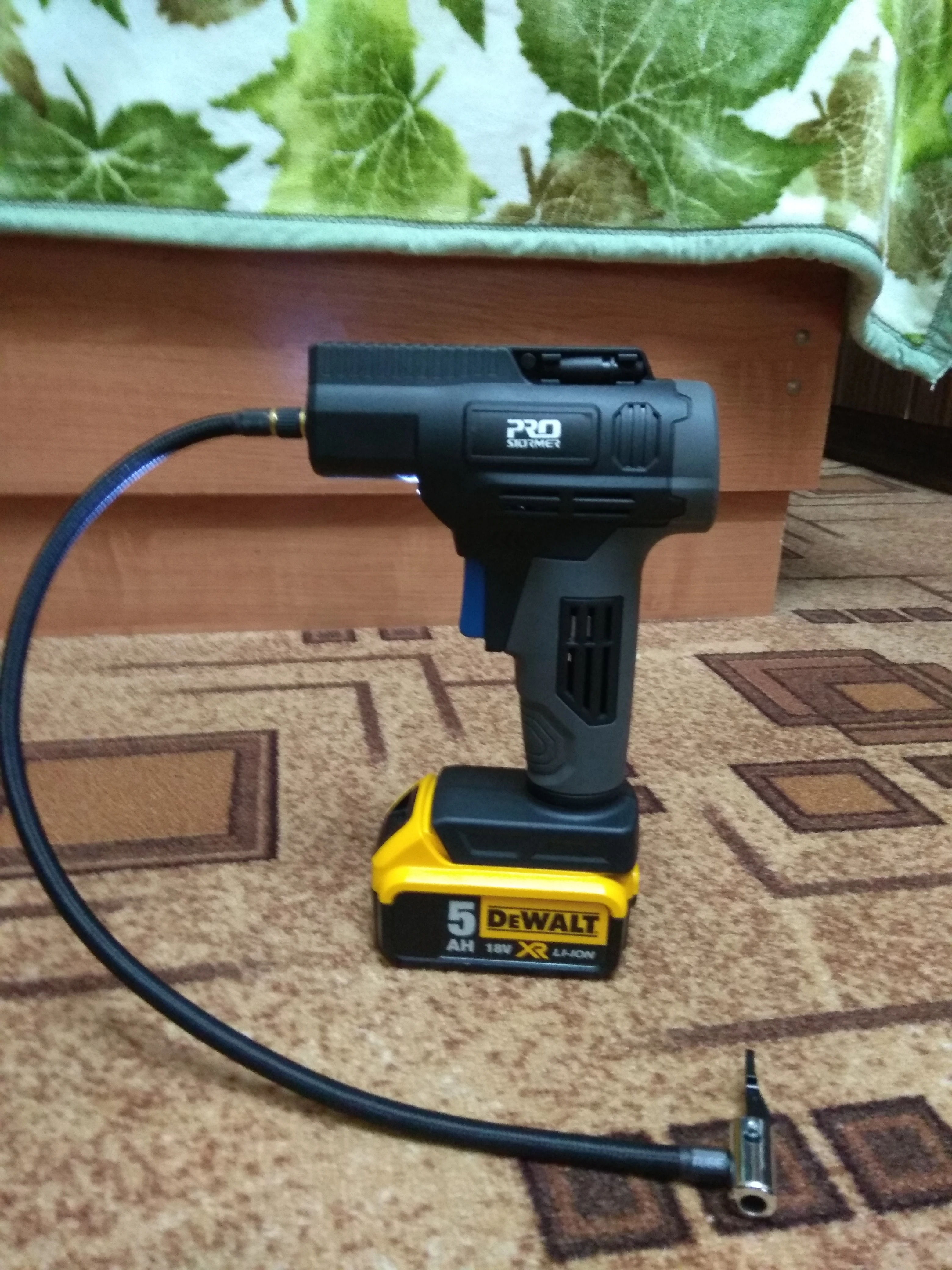 Только положительные эмоции. Оплатил в понедельник, а в четверг уже у меня. Пластик очень качественный. Обрезинка на высоте. Литьё корпуса отличное, без наплывов и всяких даже мелких косяков. Запах практически отсутствует, можно даже сказать, что нет вообще. После небольшой доработки "встал" на аккумулятор девольт. Посадка немного туговата, но сидит и фиксируется отлично. Вот если пытаться посадить деволт на аккумулятор простомер то переделки будут очень кардинальными: придётся точить либо тушку, либо сам аккумулятор. Акки простомер чуть короче в посадке. Инструмент запускается, работает, что на родной, что на девольтовской батарее. После накачивания останавливается сам на выставленном давлении. После трех минут бездействия отключается. Отличная покупка.