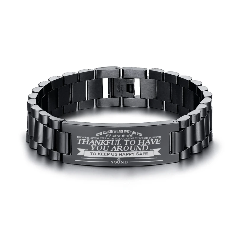 Модный браслет-цепочка на заказ, черный цвет, с гравировкой, Inspire Text, нержавеющая сталь, браслет для папы, мужские ювелирные изделия