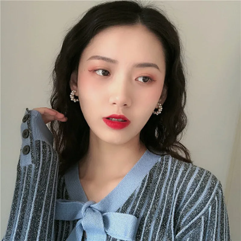Жемчужные серьги-кольца, корейские милые трендовые серьги для женщин и девочек, имитация круга, маленькая серьга-кольцо