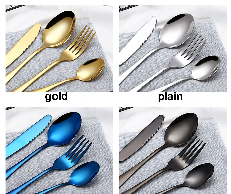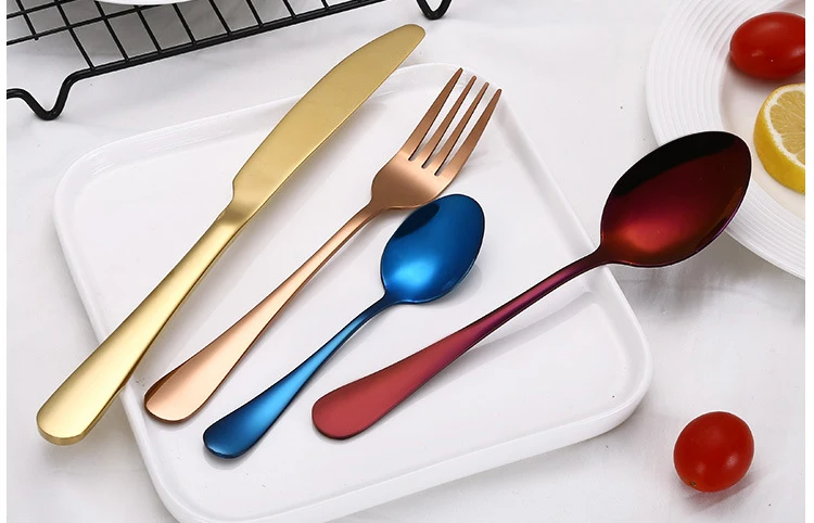 Набор из 4 предметов, красочные столовые приборы из нержавеющей стали, набор ножей с вилкой и ложкой, металлические столовые приборы, столовые приборы, сервировочная посуда