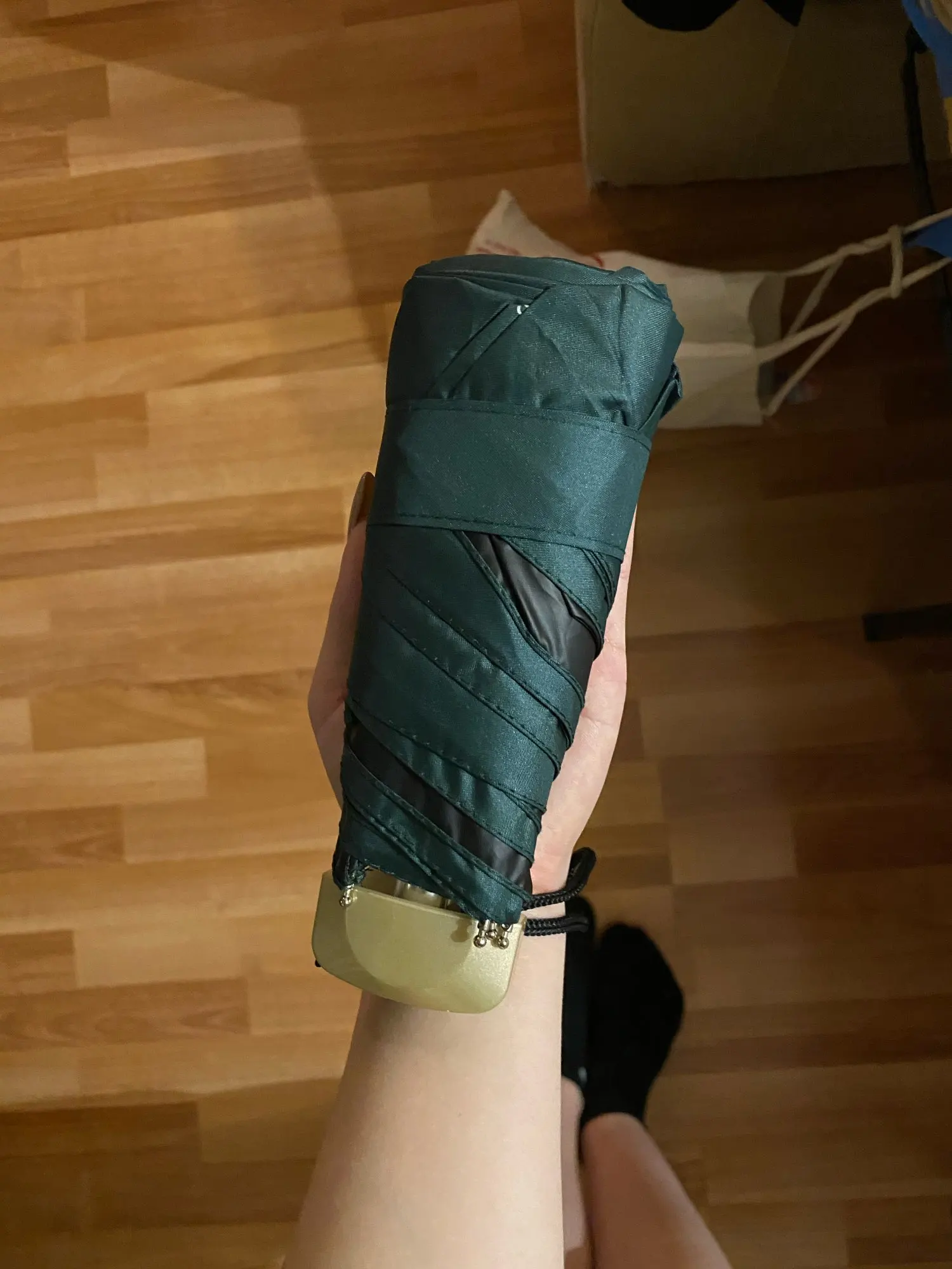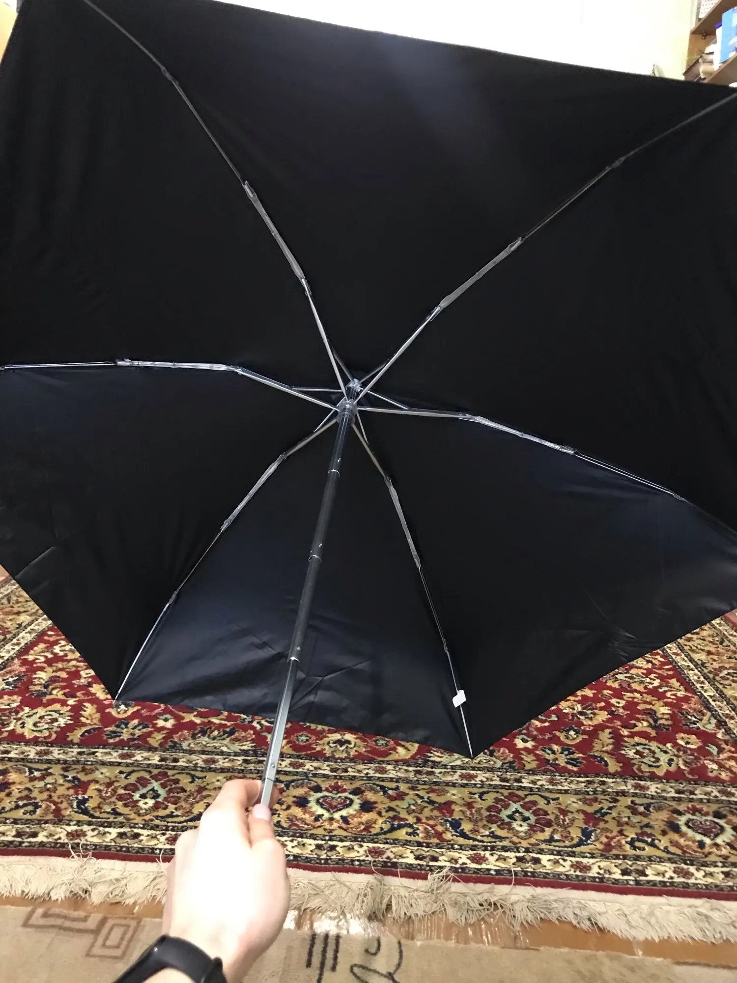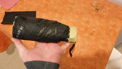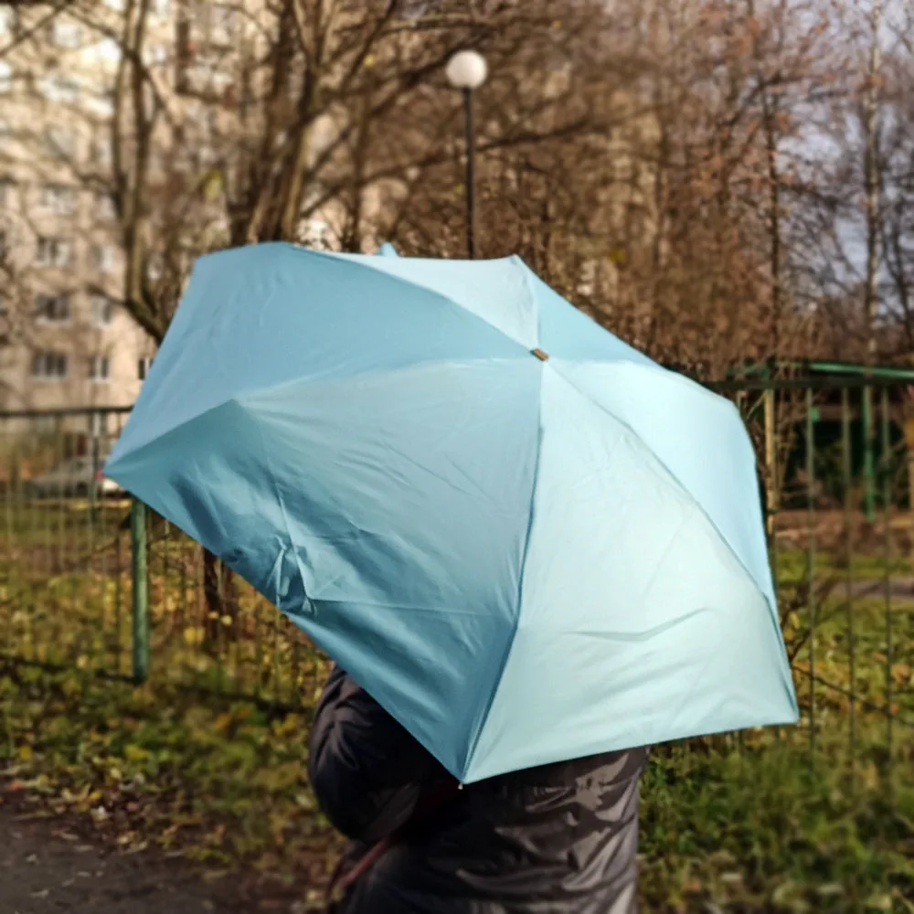 Хороший миниатюрный в сложенным виде зонтик, удобно закинуть в сумочку и вспомнить лишь, когда внезапно, как и бывает в Питере пойдёт дождь! Плюс в раскрытом виде совсем не мал и ткань похоже реально плотная и имеется какая то пропитка от дождя. И также спицы и основания зонтика внушают доверие! Долго сомневалась, но увидев, когда получила, не пожалела, что заказала! Спасибо продавцу, что на рынке есть такие нужные и вместе с тем приятные штучки!