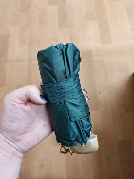 Хороший крепкий зонт! Однозначно стоит своих денег! Оказался немного больше, чем ожидал, все-таки искал прям миниатюрный зонтик, чтобы носить всегда с собой в кармане куртки. Он конечно помещается в карман, но уж слишком громоздкий для этого.