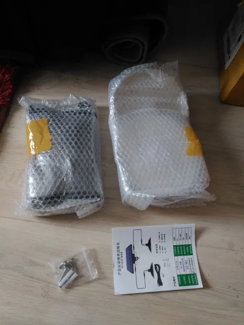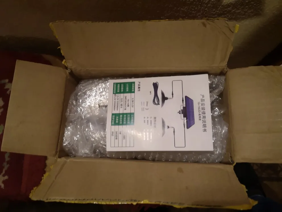 Доставка в Новосибирск через 2 месяца с момента заказа. Упаковано в картонную коробку, каждый элемент - отдельно в пупырку. Всё пришло целое. Аккумулятор (на вид около 5000 мАч) практически разряжен. Зарядил на солнце. Прикольное управление с пульта ДУ. Всё понравилось и работает. Буду устанавливать на дачный туалет. Дороговато.