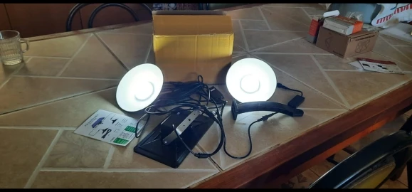 Доставка 2 месяца, из них 2 недели - внутри города между двумя офиса и СДЕК. Качество неплохое, 2 пульта, 2 лампы. Проверить в реальных условиях удастся только ближе к лету.