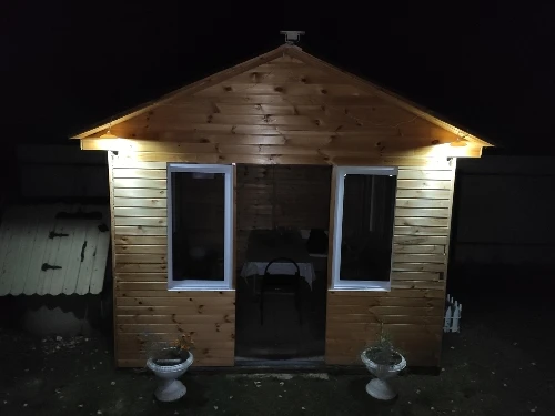 Всё цело, всё работает. Светит нормально, для беседкиПока не тестировал.