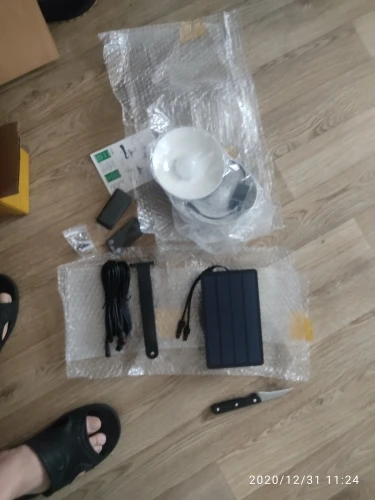 Заказ прибыл 17.11, более месяца! Упаковка была мятая, но, все оказалось целым и в рабочем состоянии! Солнечная панель часов пять полежала на солнце, уже светит где то три часа, думаю часов пять просветит! Брал с аккумулятором 5500 ампер, меньше думаю нет смысла брать! Продавца советую, если только улучшит упаковку изделия!