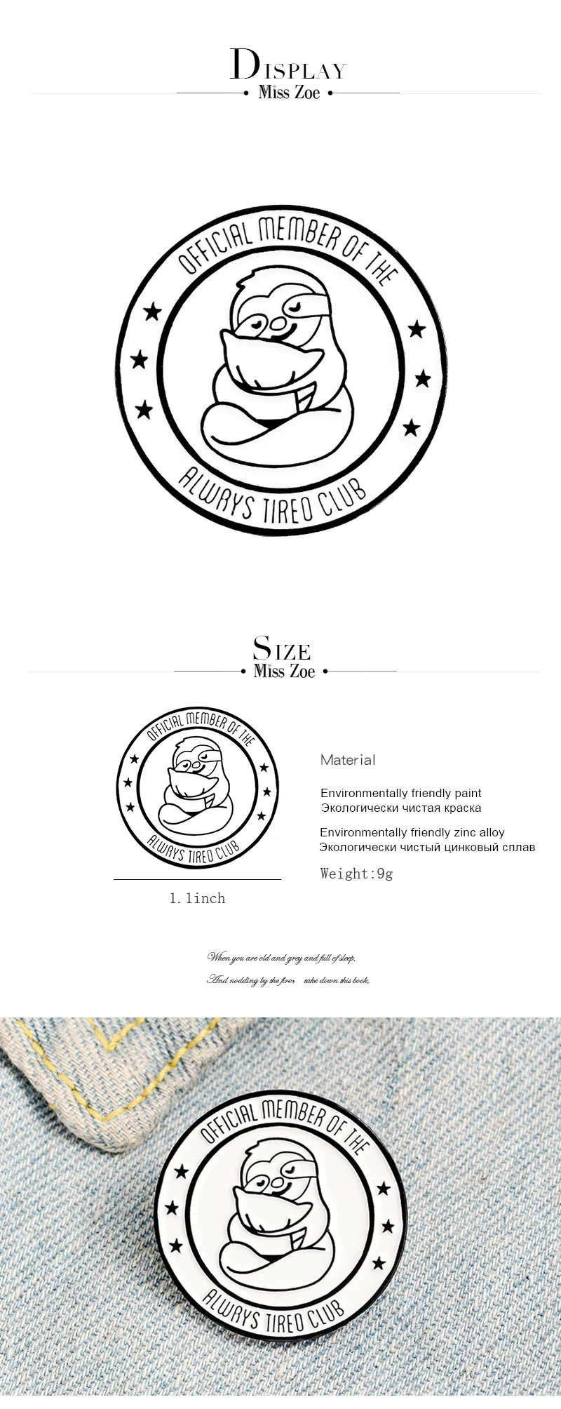 Значок на булавке с эмалью с изображением ленивца и подушек всегда уставшего клуба, брошь с изображением ленивого духа, заказной значок на лацкан, рубашку, сумку, Ювелирное Украшение с героями мультфильмов, подарок для друга