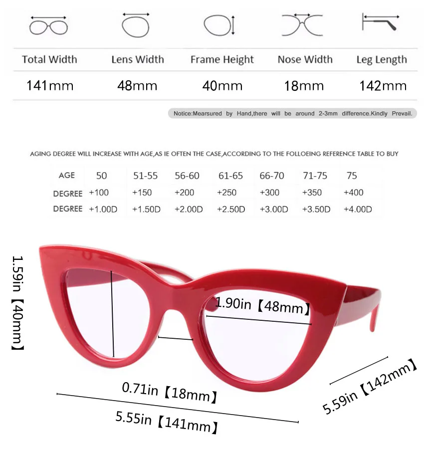 -SOOLALA 4 Pairs Mixed Colors Anti Blue Light Cat Eye Reading Glasses Women Cateye Presbyopic Glasses For Sight 1.0 2.0 to 4.0-Anti Blue Light Lens will well protect your eyes-High Quality Cat Eye Small frame with clear lens-Fashion Reading Glasses with the cases-Lens width: 47mm/1.85in, height: 40mm/1.57in, bridge: 19mm/0.74in, arm length: 141mm/5.55in, total length: 146mm/5.74in-Best gifts choice for all female-Comes with branded "SOOLALA" clean cloth and pouch-4 Pairs in one low price, keep one pair in each area
