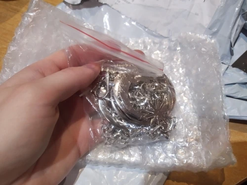 Как на фото, но качество получили несколько поврежденных и должны были зафиксировать или пропускать ссылки, так что не отличный контроль качества, но ремень, как отражено, должен быть готов сложить его вместе