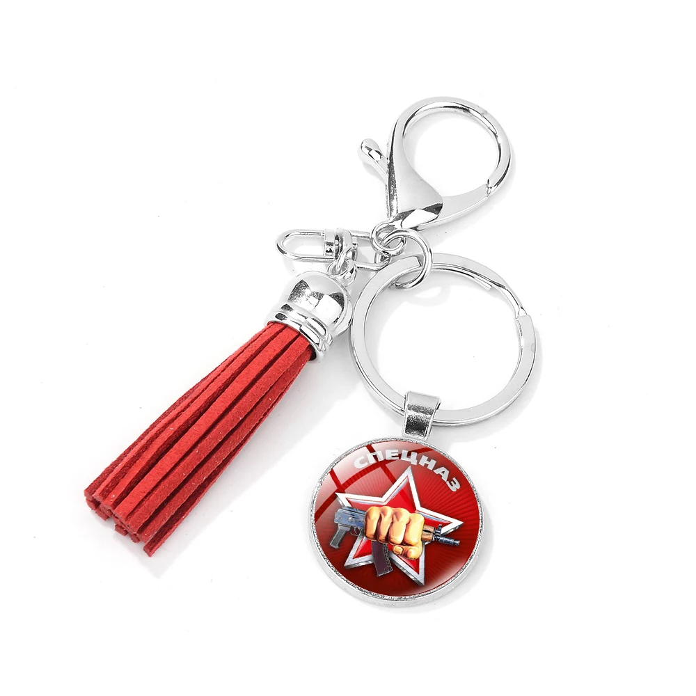 CCCP СССР Советская Армия Красная звезда брелок со стеклянным кабошоном Красочные кисточки брелок держатель ювелирные изделия Прямая поставка для друзей