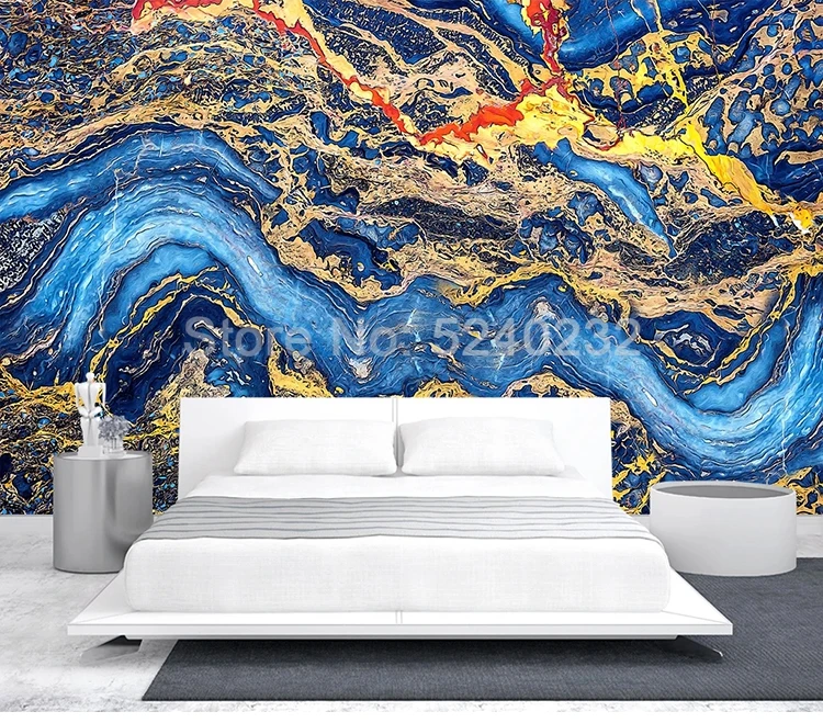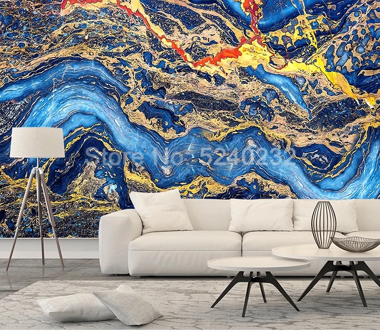 Пользовательские 3D фото обои современный синий мрамор узор фоновая стена гостиная Золотая абстрактная роспись обои Papel De Parede