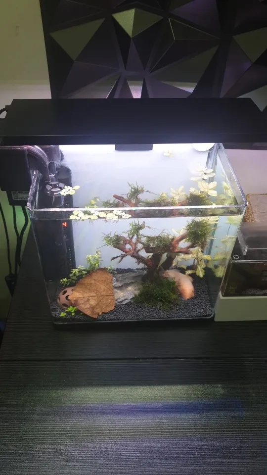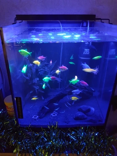 Отличная лампа. В настройках ещё не совсем разобралась, буду экспериментировать. Включается и выключается в заданное время. Жалко, что настройки не запоминаются при выключении из розетки, либо при отключении электричества, что у нас в деревне бывает периодически. И ещё, корпус лампы достаточно сильно нагревается, не знаю норма ли это. При лунном свете рыбки очень красиво светятся)))