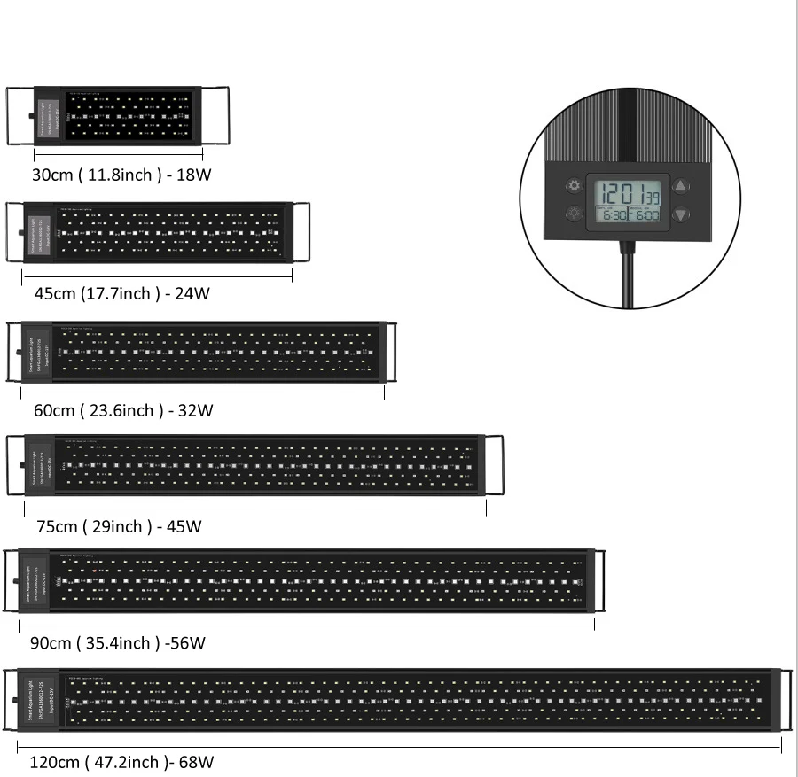 Этот новый аквариумный светильник спроектирован со встроенным таймером, программируемым восходом солнца и закатом, 2-канальным дневным светильник лунным светильник том независимо.