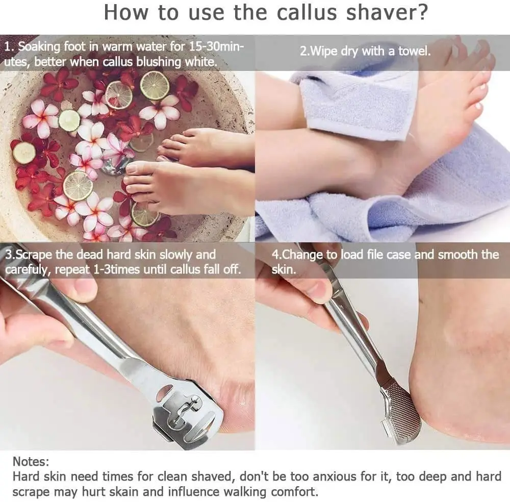 1. Перед использованием замачивайте ногу в теплой воде на 15-20 мин или можете принять душ вместо.2. Лезвие продукта действительно остро, будьте осторожны, когда вы используете его, или это может привести к травмам.3. Не используйте чрезмерно, особенно в первый раз, используйте его в соответствии с руководством, и вы достигнете наилучшего результата.4. Во избежание ржавчины: сушите лезвия после каждого использования. Он не заржавеет, если сохранить их в хорошем состоянии.5. Пожалуйста, держите его подальше от детей, чтобы избежать случайного поражения.Подходит для: мужчины/женщины, ноги которых с толстой омертвевшей кожей, сухие, лопающиеся, натоптыши и т. Д.