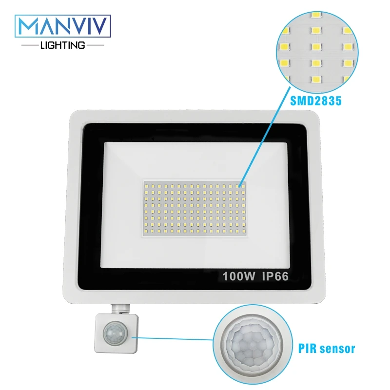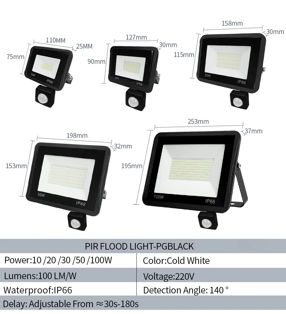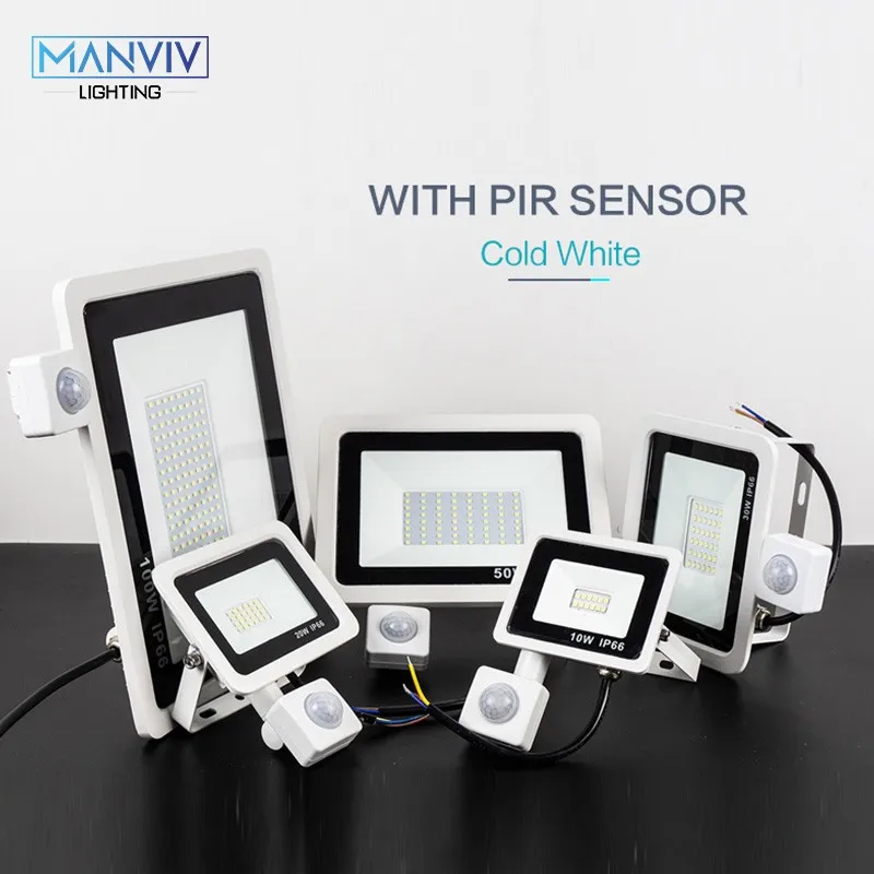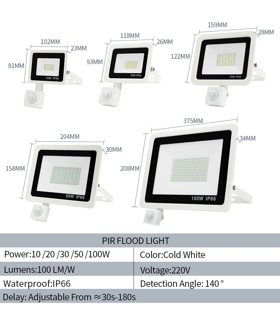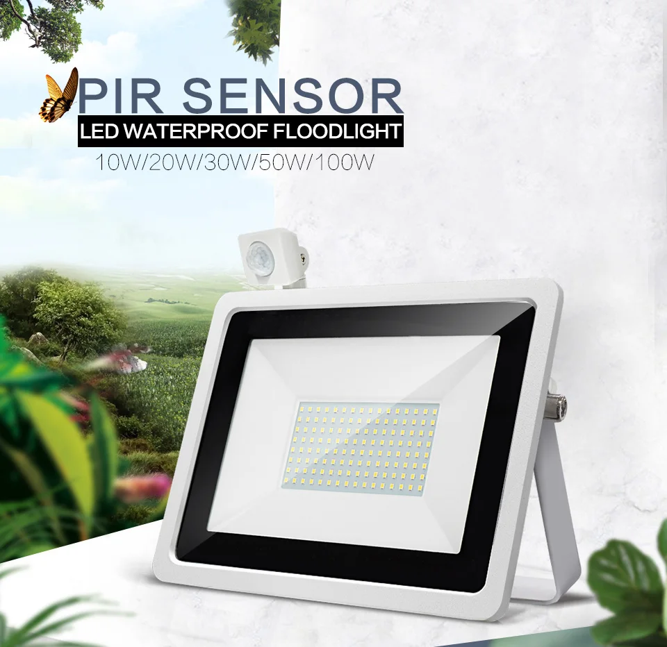 Датчик движения, Светодиодный прожектор 10 Вт, 20 Вт, 30 Вт, 50 Вт, 100 Вт, водонепроницаемый IP66, наружный светильник, 220 В, светодиодный прожексветильник для сада, настенный отражатель