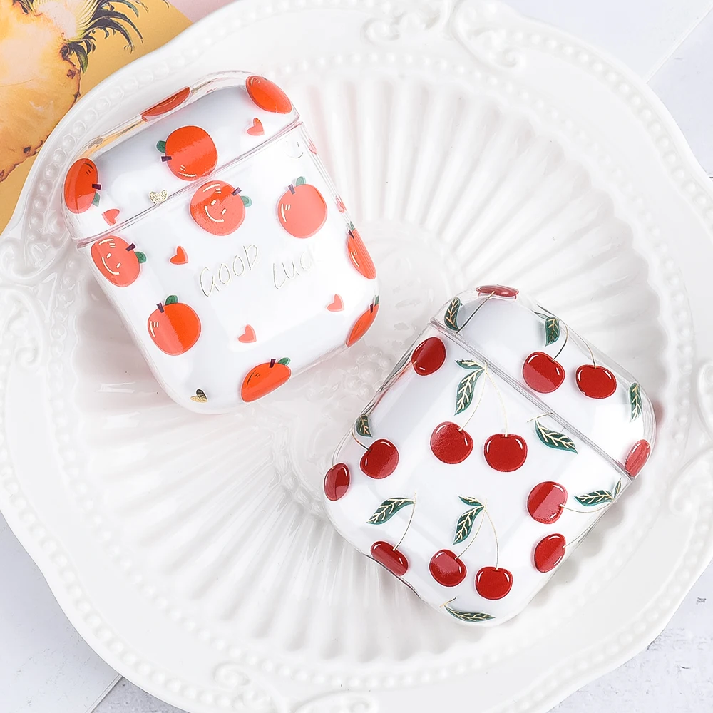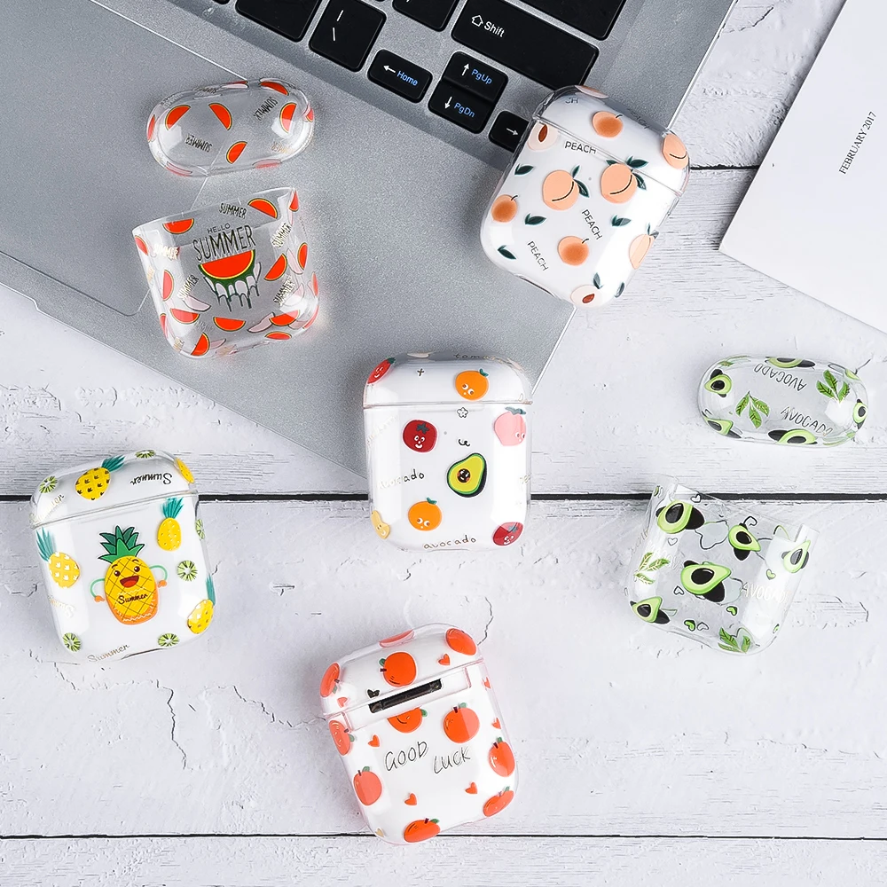 Защитный чехол для наушников Apple Airpods 1, 2, прозрачный, с мультяшными фруктами