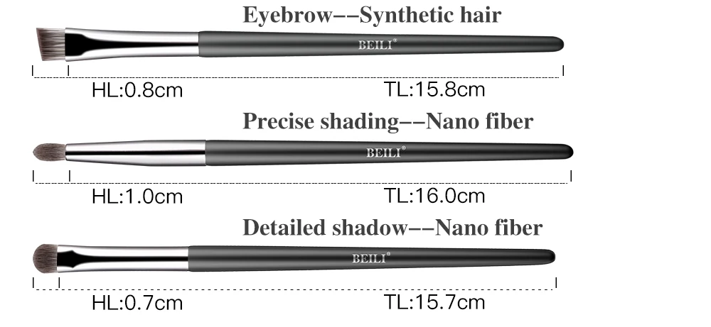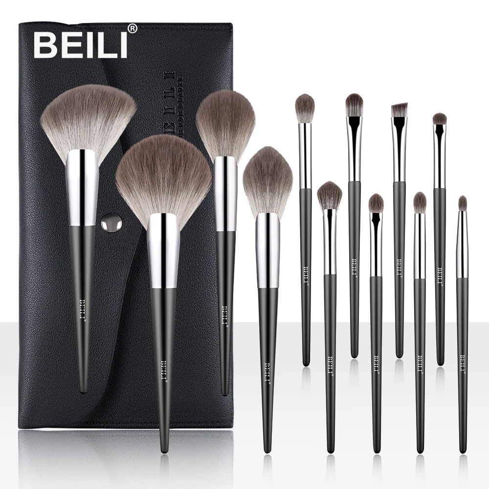 BEILI Профессиональные кисти для макияжа, веер, пудра, румяна, мягкое нано волокно, волосы, бровей, 12 шт., набор косметических кистей для макияжа