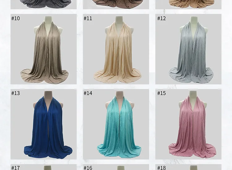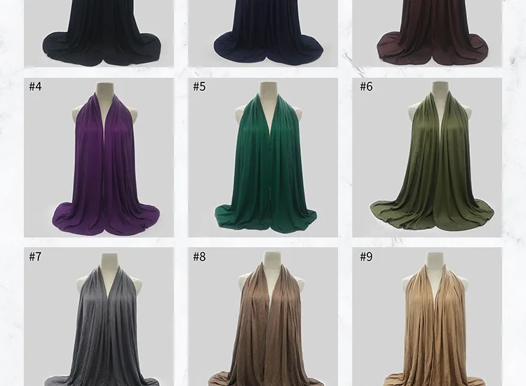 Однотонный хлопковый шарф, хиджаб для мусульманских женщин, эластичный головной платок из Джерси, женский головной платок, тюрбан, платок