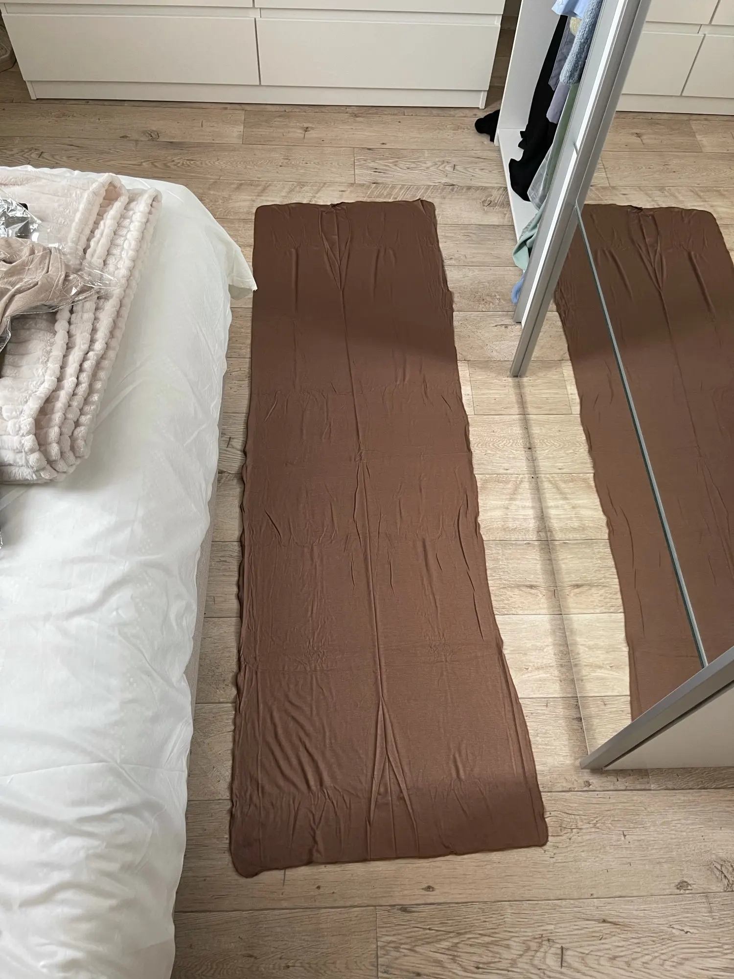 Я получил посылку через две недели. Я совсем не удовлетворен, потому что я думал, что ткань немного толще и намного шире, конечно, она длинная, но недостаточно широкая. Я не просил возмещение, потому что сроки доставки были отправлены, и, прежде всего, мне это нужно очень быстро