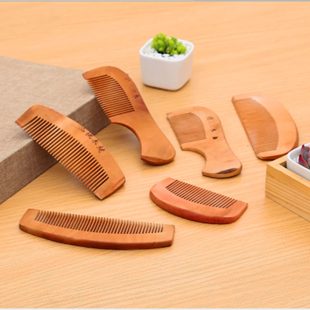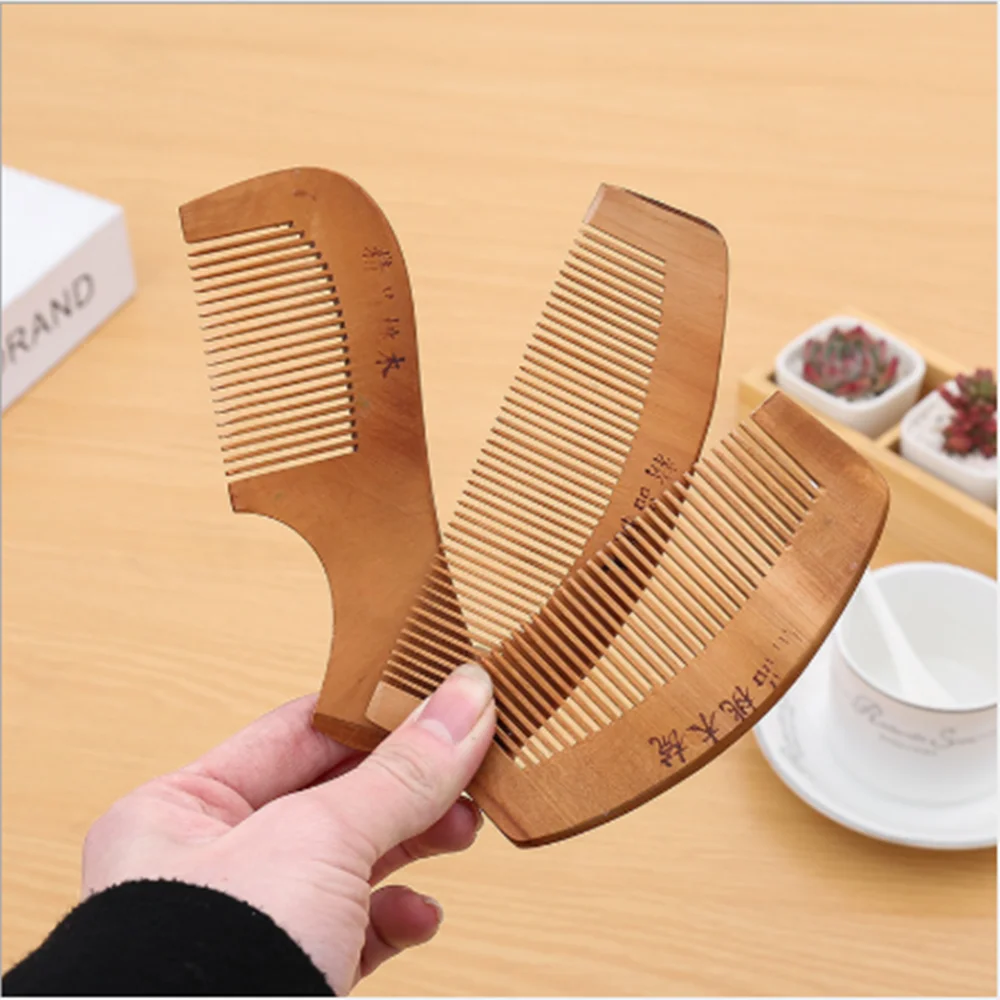 1 шт. Антистатическая деревянная расческа из натурального персикового дерева Антистатическая Расческа для бороды гравировка персикового дерева инструменты для ухода за здоровыми волосами