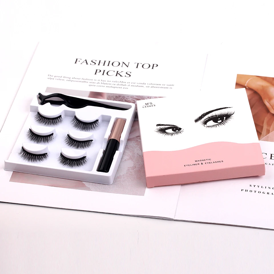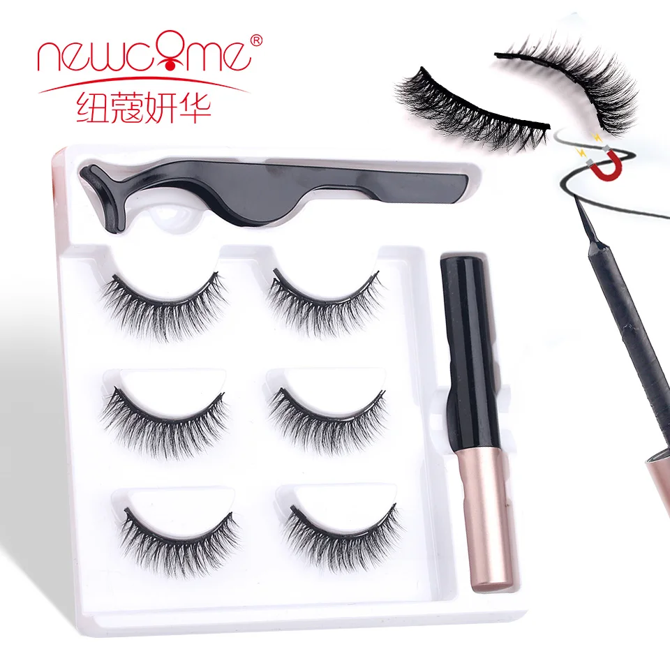 Набор Магнитных ресниц NEWCOME, набор из 3 предметов, магнитная жидкая подводка для глаз и магнитные ресницы и пинцет, водонепроницаемые, стойкие ресницы