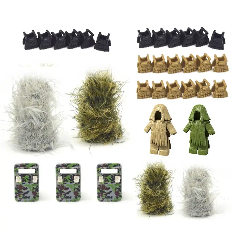 Фигурки Ghillie, костюмы, военные аксессуары, кирпичи, оружие спецназа, солдат, парашют WW2, армейские запчасти MOC, строительный блок PUBG