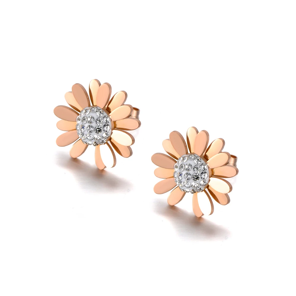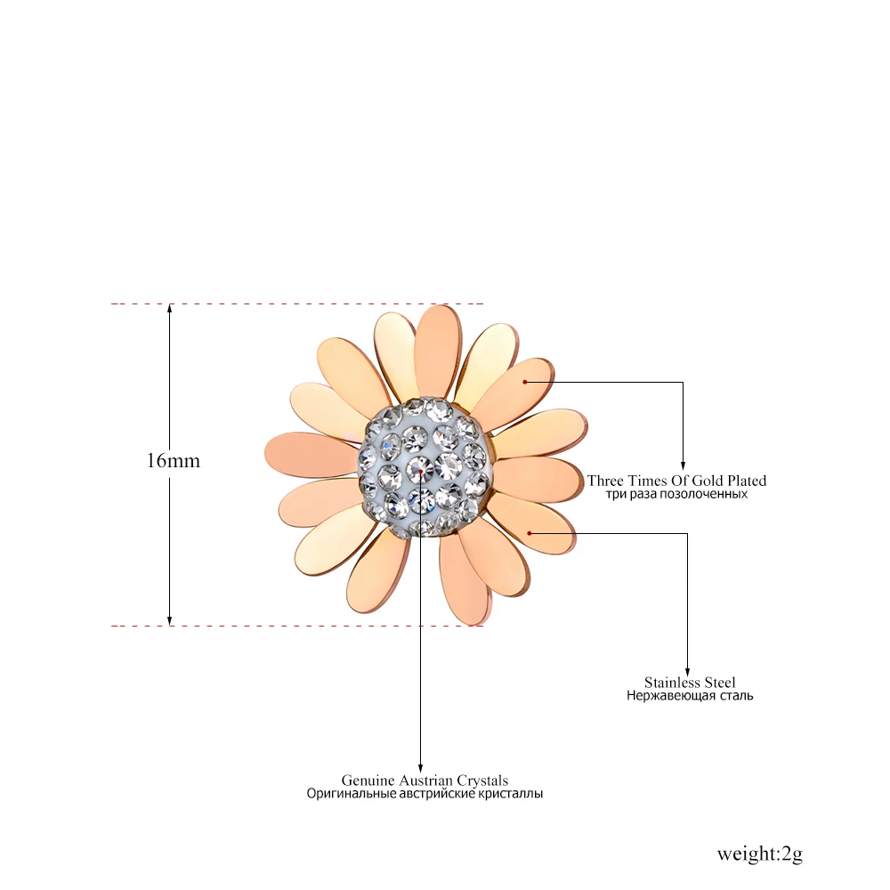Женские серьги-гвоздики Lokaer, Маленькие стразы из нержавеющей стали с ромашками, подсолнухами, ювелирное украшение для девушек и женщин, E20097