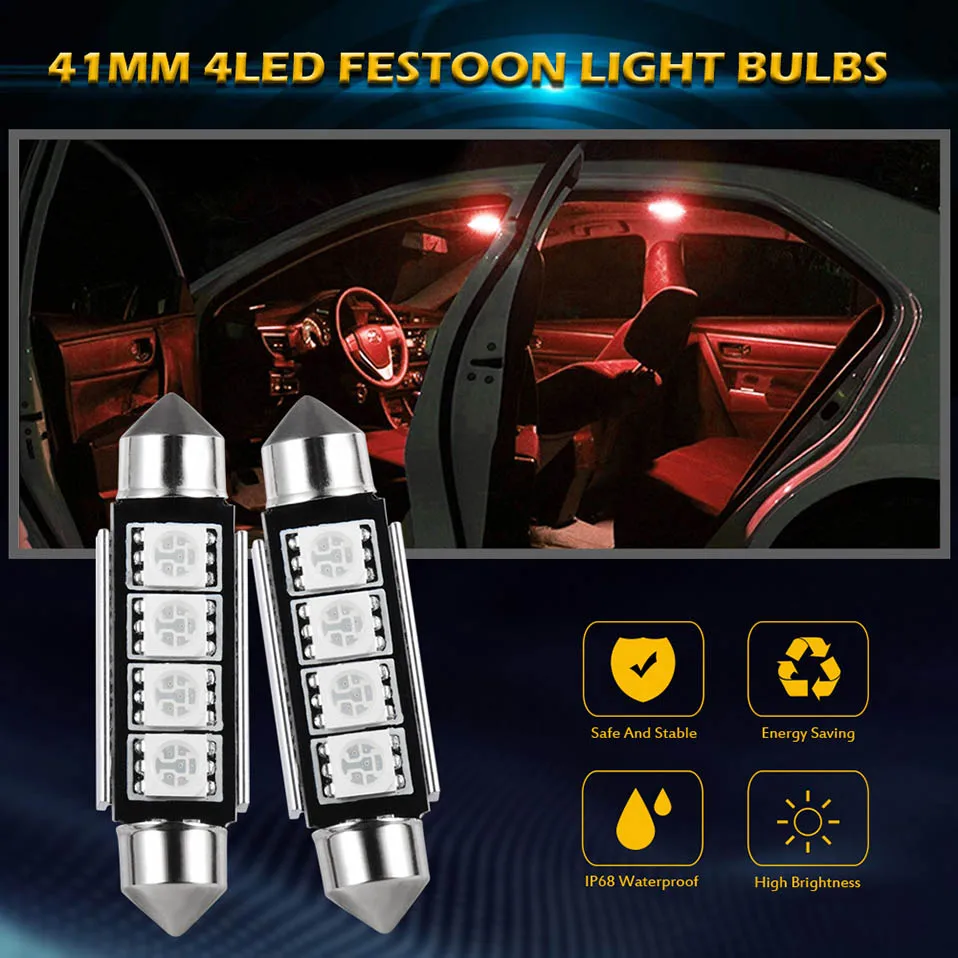 4x C5W C10W СВЕТОДИОДНЫЕ Лампы Canbus 5050 SMD Festoon красный белый 41 мм 42 мм купольсветильник ПА для чтения автомобильная лампа для внутреннего освещения 12 в 6000K