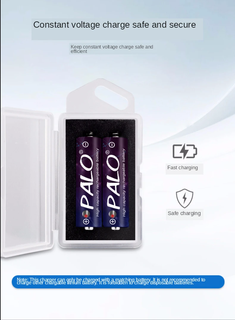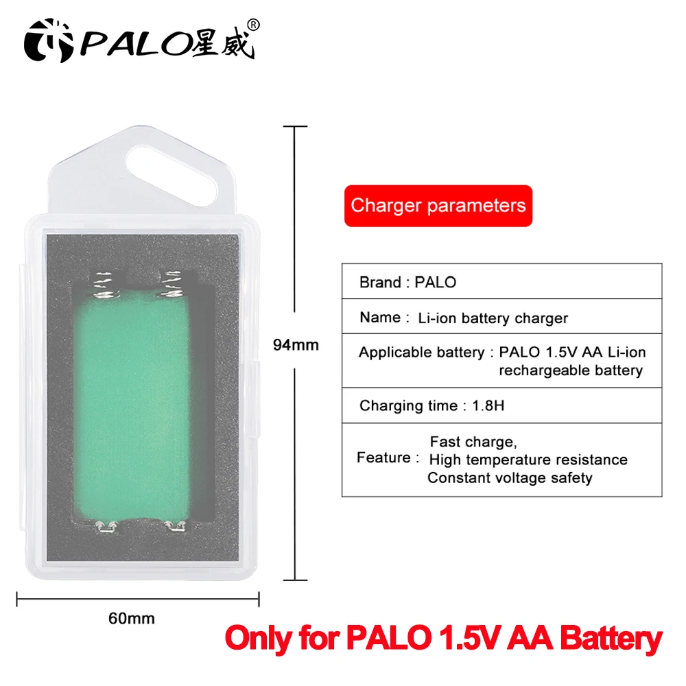 Зарядное устройство Palo с 2 слотами для литий-ионных аккумуляторов 1,5 в AA, зарядное устройство с USB-портом только для литиевых аккумуляторов PALO 1,5 в AA, зарядное устройство
