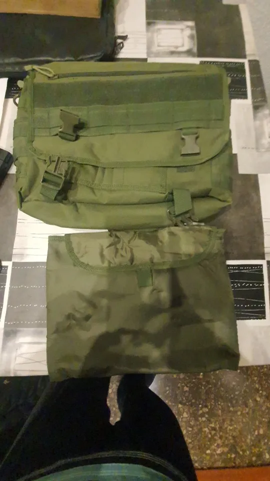 Продавец молодец! Прислал быстро,сумка соответствует описанию,изготовлена добротно. Но (нет предела совершенству),флажки на бегунках молний пришлось заменить (на более тёмные), добавить пряжку на ремень (чтоб не разбегался), убрать (непонятно для чего) пришитые полукольца на ремешках защелок. Фото до и после. Продавца рекомендую.