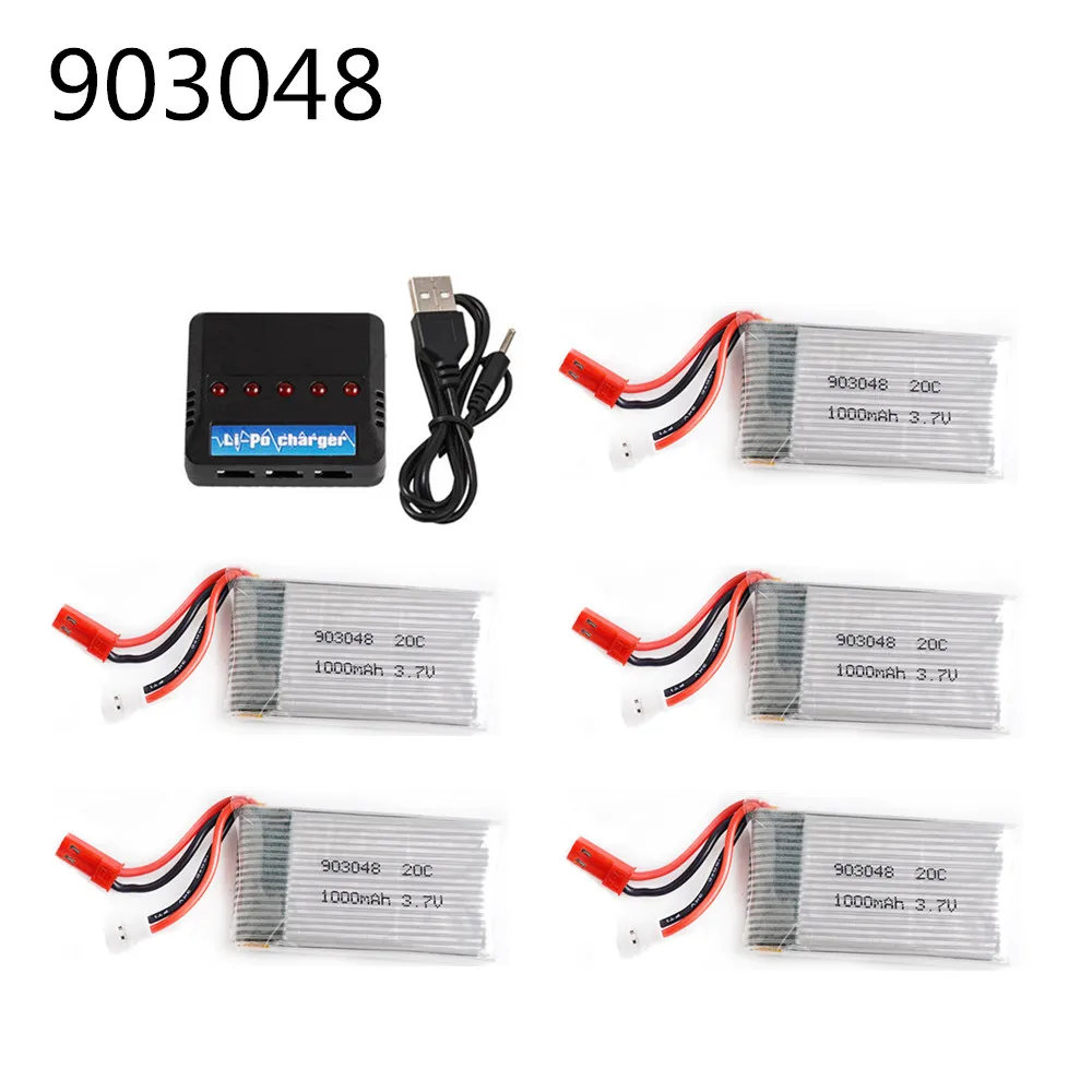 Аккумулятор 3,7 в, 1000 мА ч, 20c, литий-полимерный аккумулятор + зарядное устройство для квадрокоптера X600 RC, запасные части, аккумулятор 903048 Дрон с перезаряжаемым аккумулятором, 1 шт.-5 шт.