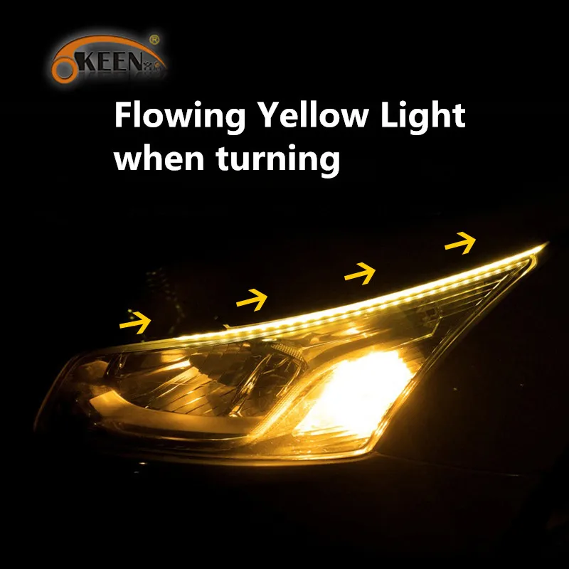 Автомобисветильник последовательные дневные ходовые огни OKEEN, 2 шт., многоцветные светодиодные полосы, поворотники для головного светильник