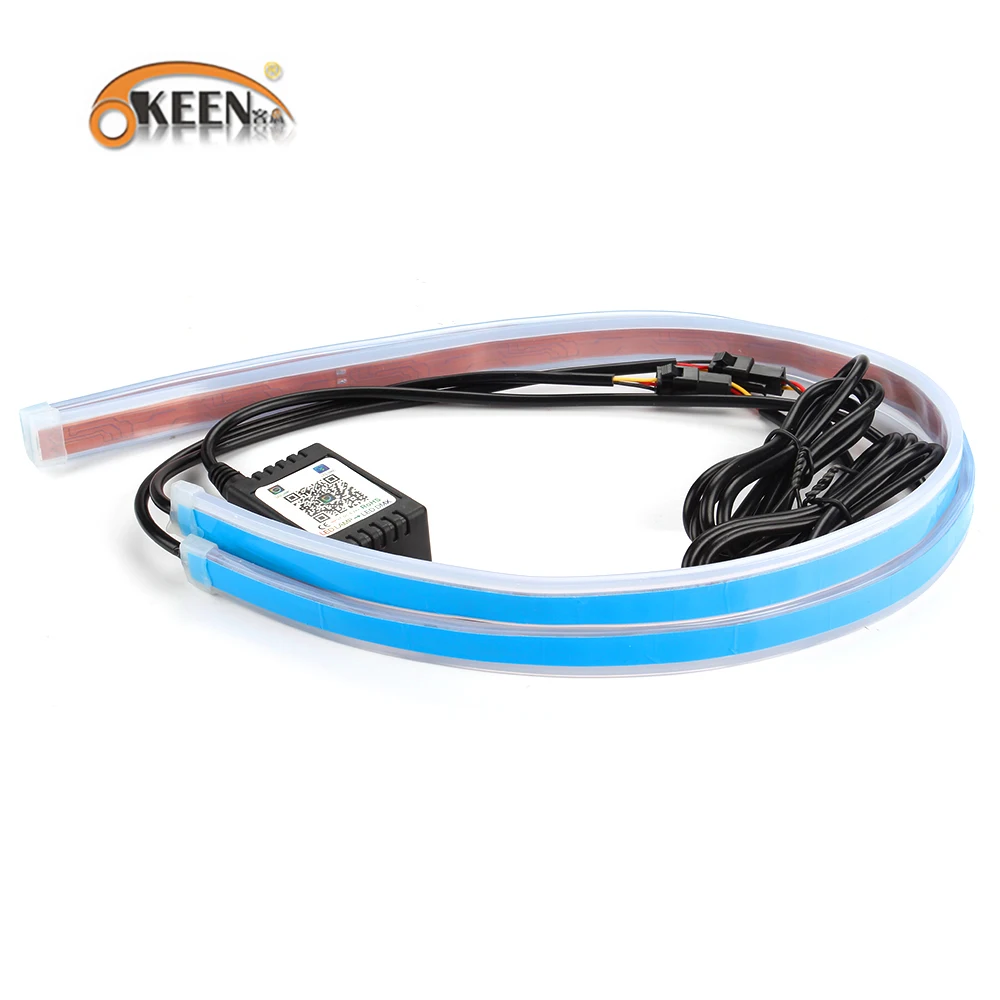 Дневные ходовые огсветильник OKEEN, 2 шт., многоцветные светодиодные полосы дневных ходовых огней RGB, DRL, в приложении, для головного светильник