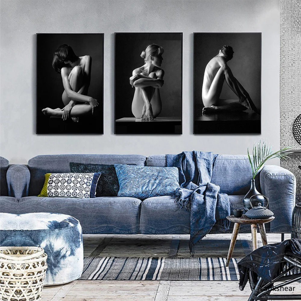 Белый и черный телесный женский художественный постер картина на стене гостиная украшение принты Декор для дома холст масло Paining