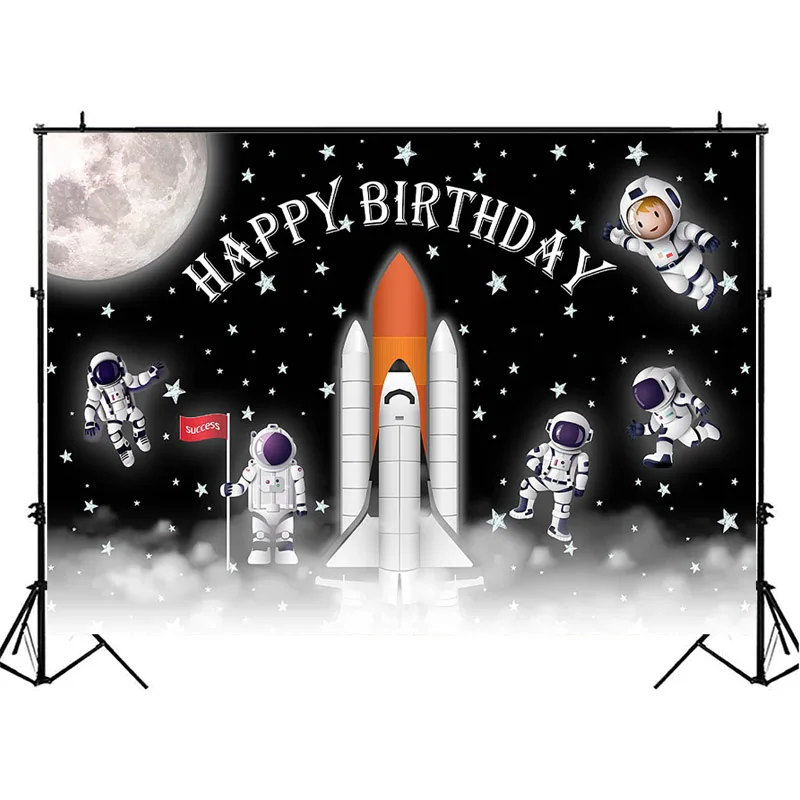 Космический мальчик фон для первого дня рождения космонавты и ракеты первый день Рождения Вечеринка фон для фотографии луна звезды декор баннер
