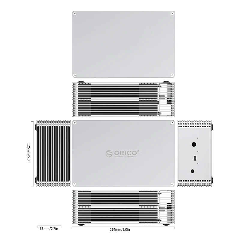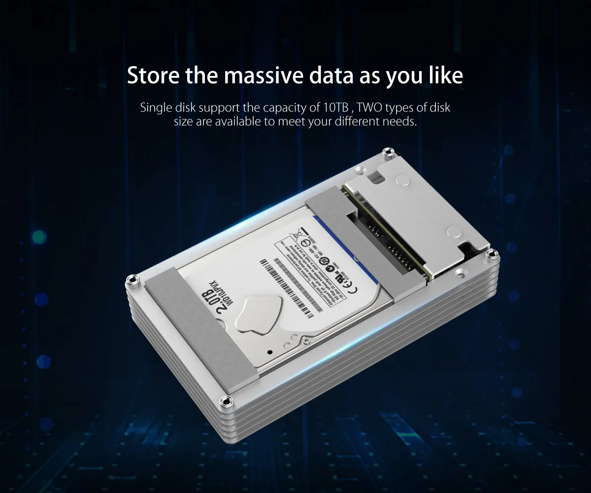Корпус для жесткого диска ORICO, 3,5 дюйма, два отсека, алюминиевый сплав, Type-C, полый, с поддержкой емкости 20 ТБ, один диск 10 ТБ