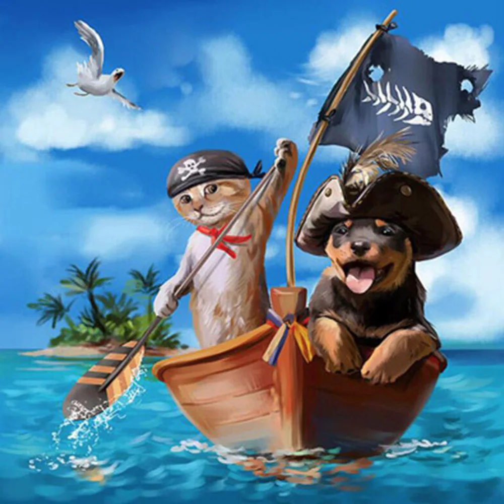 Алмазная мозаика, вышивка крестом, пират, кошка и собака, подарок ручной работы г., сделай сам, 5D алмазная живопись, вышивка, Серия животных, Настенный декор