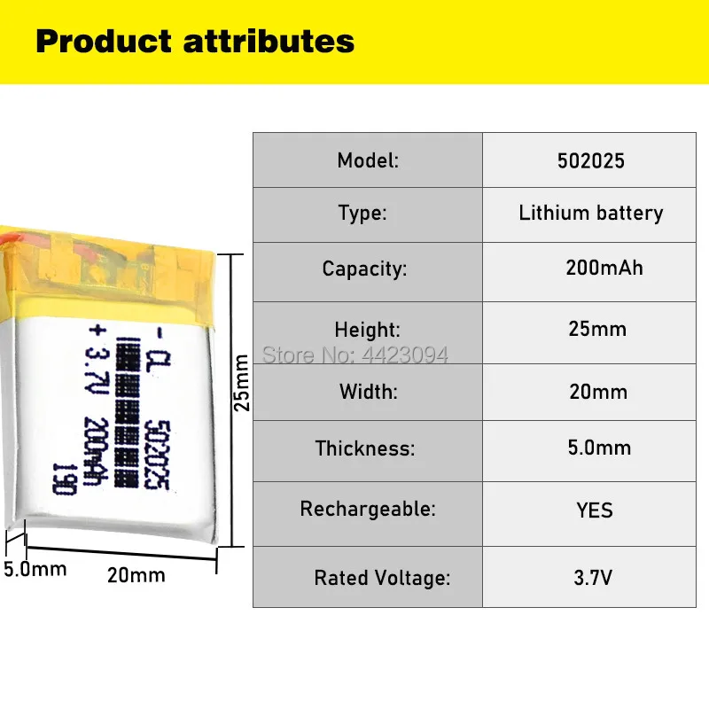 Аккумулятор 200 мА ч, 3,7 в, 502025, литий-полимерный, литий-ионны...