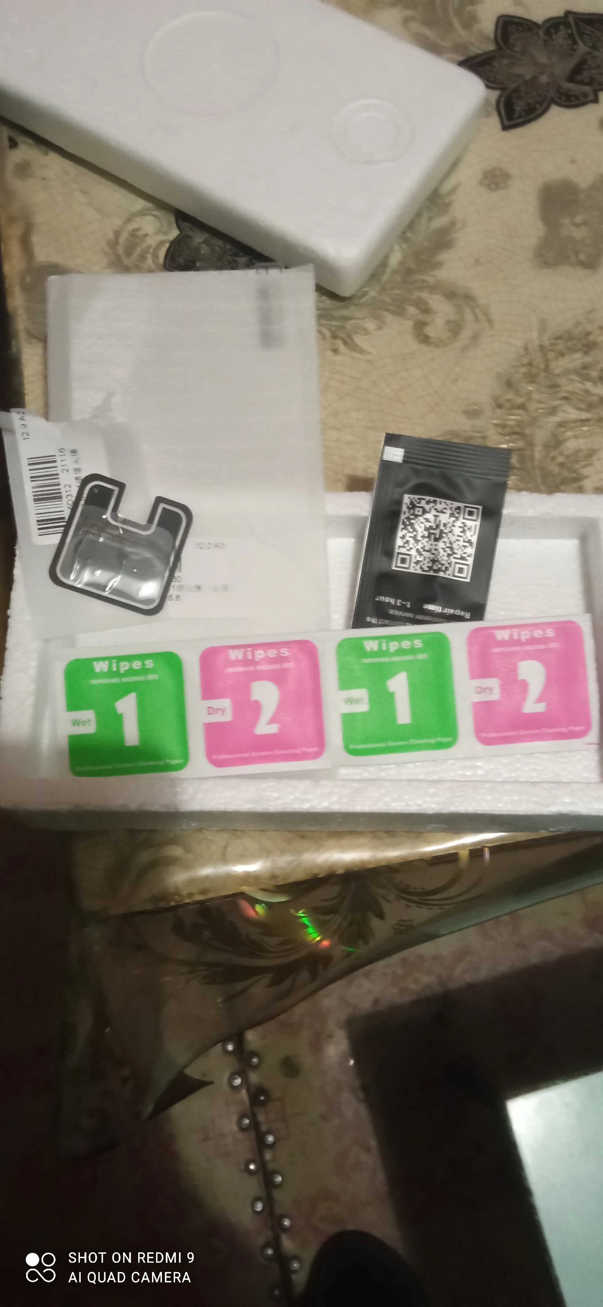 пришло в хорошей упаковке со всеми допы были и была житкасть для стекла. житкасть убрала все пузыри по краю. на камеру плёнка а не стекло которая оказалась бесполезна так как портит фото