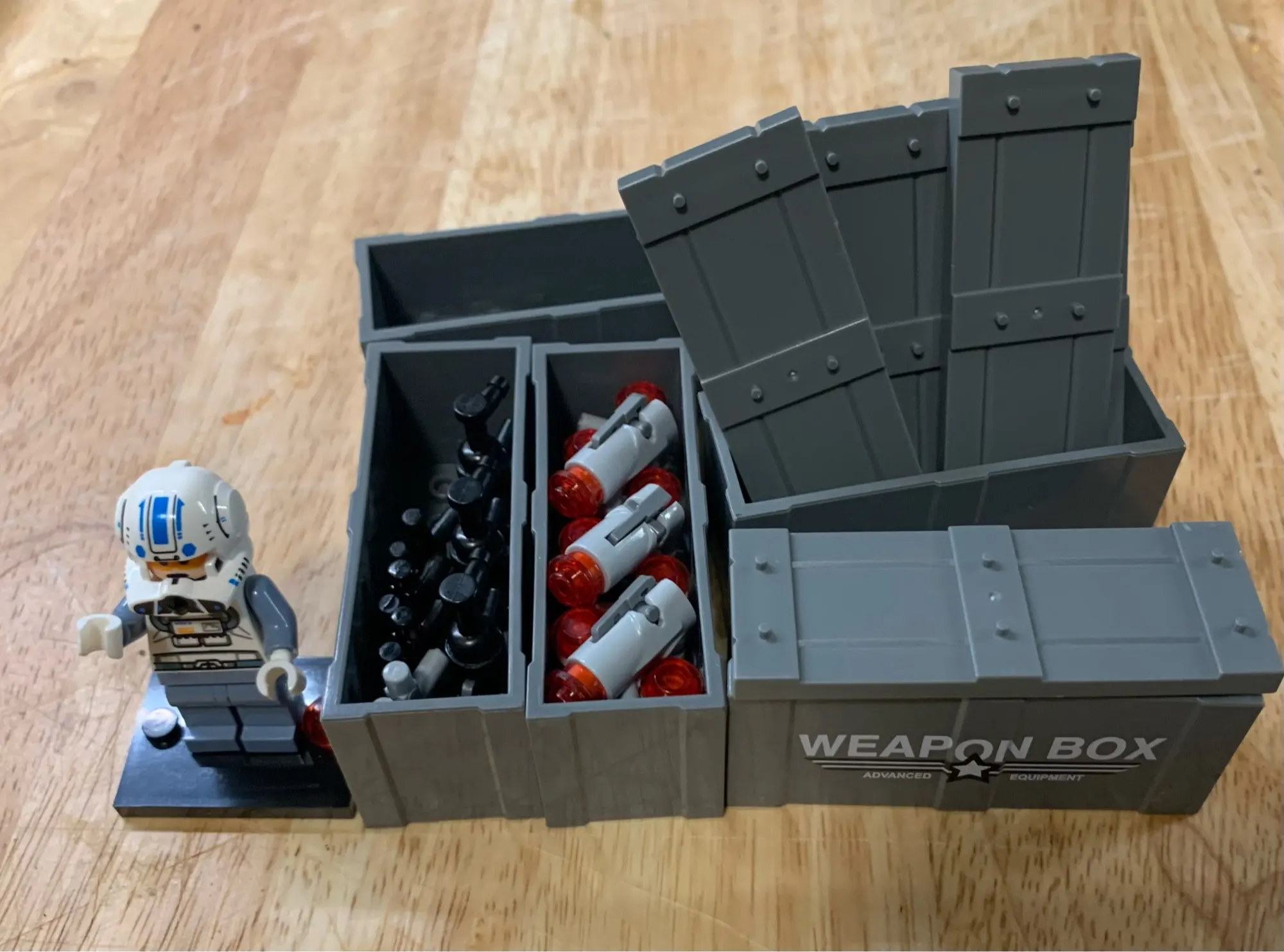 Оружие создает прекрасное дополнение к пейзажу моей кирпичной модели и удерживает удивительное количество малых видов оружия и блоков. Рисунок и оружие на фотографиях приведены для справки по размерам и не включены в комплект.